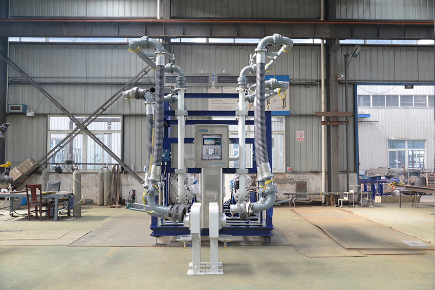 裝車橇將控制儀、流量計、閥門、管道、附屬設備、 鶴管、中間連接件及電纜、橋架等集成在一起,現(xiàn)場安裝方便,并且整體維護方便。